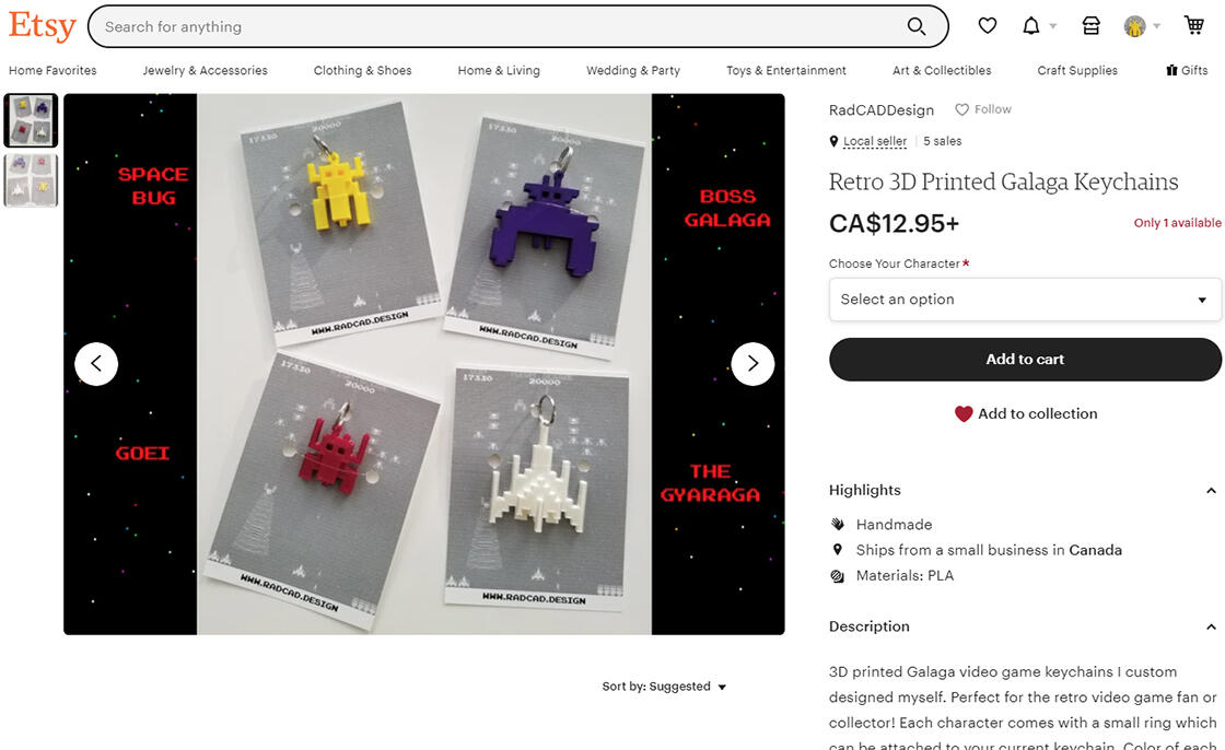 I had an Etsy store and Thingiverse page where you could find some of my custom designed CAD models. My Etsy shop featured 3D printed retro video game keychains and my Thingiverse page focused on my aircraft models.